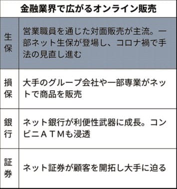 一方で、銀行や証券など金融業界ではスマホなどを通じたネット取引が一般的になっている。海外では中国平安保険などが疾病予防を支援するアプリなどを使って保険事業につなげるモデルを作っている。米生保業界も保険契約を非接触で終える取り組みが進んでいる。